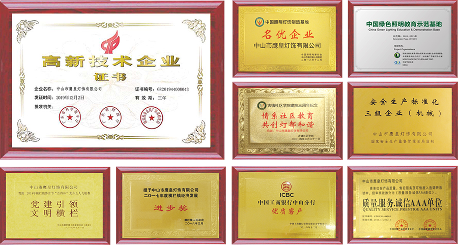 中山市鷹皇燈飾有限公司,是一家服務(wù)全球的,燈飾照明工程設(shè)備生產(chǎn)企業(yè),及整體解決方案技術(shù)供應(yīng)商,于2004年注冊成立,總部位于中國中山市橫欄鎮(zhèn)。鷹皇公司專注燈飾、照明領(lǐng)域,擁有近100畝、自主產(chǎn)權(quán)、燈飾照明產(chǎn)業(yè)配套工業(yè)園,公司創(chuàng)始人李杰標(biāo)先生憑借20多年行業(yè)經(jīng)驗(yàn),及不斷創(chuàng)新的精神,帶領(lǐng)團(tuán)隊(duì)專心打造國際標(biāo)準(zhǔn)的生產(chǎn)系統(tǒng),研發(fā)生產(chǎn)高標(biāo)準(zhǔn)產(chǎn)品,拓展全球市場。